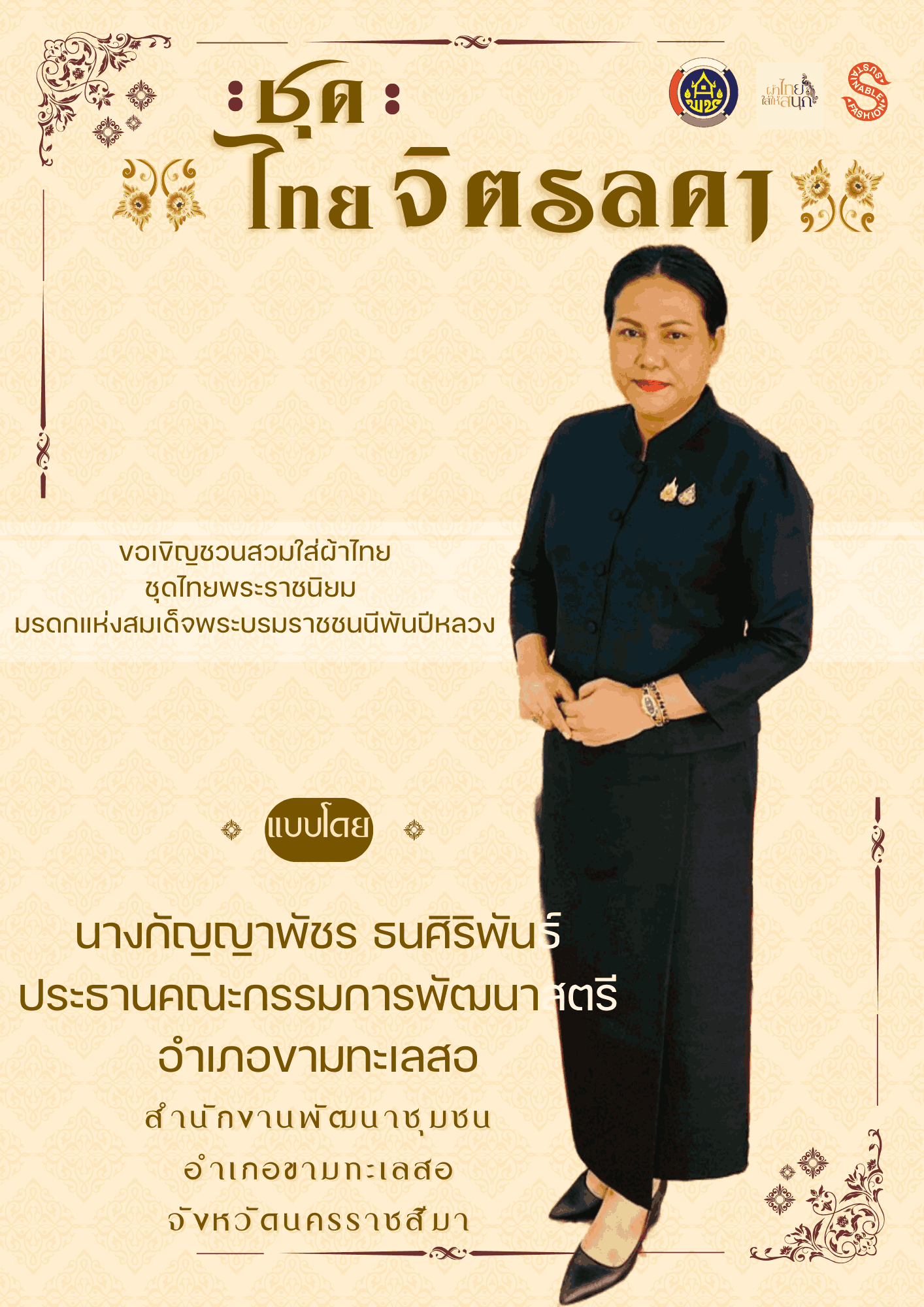 พช. ขามทะเลสอ ขอเชิญชวนข้าราชการ เจ้าหน้าที่ ภาคีเครือข่าย และประชาชนชาวขามทะเลสอ "สวมใส่ชุดไทยพระราชนิยม 8 แบบ"