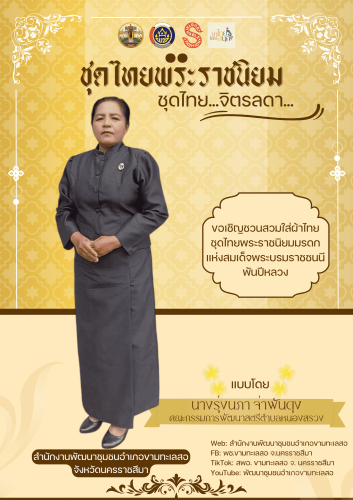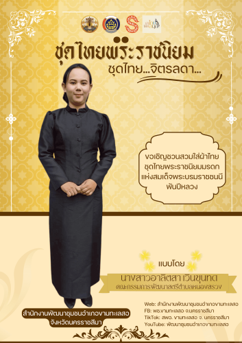 พช. ขามทะเลสอ ขอเชิญชวนข้าราชการ เจ้าหน้าที่ ภาคีเครือข่าย และประชาชนชาวขามทะเลสอ "สวมใส่ชุดไทยพระราชนิยม 8 แบบ"
